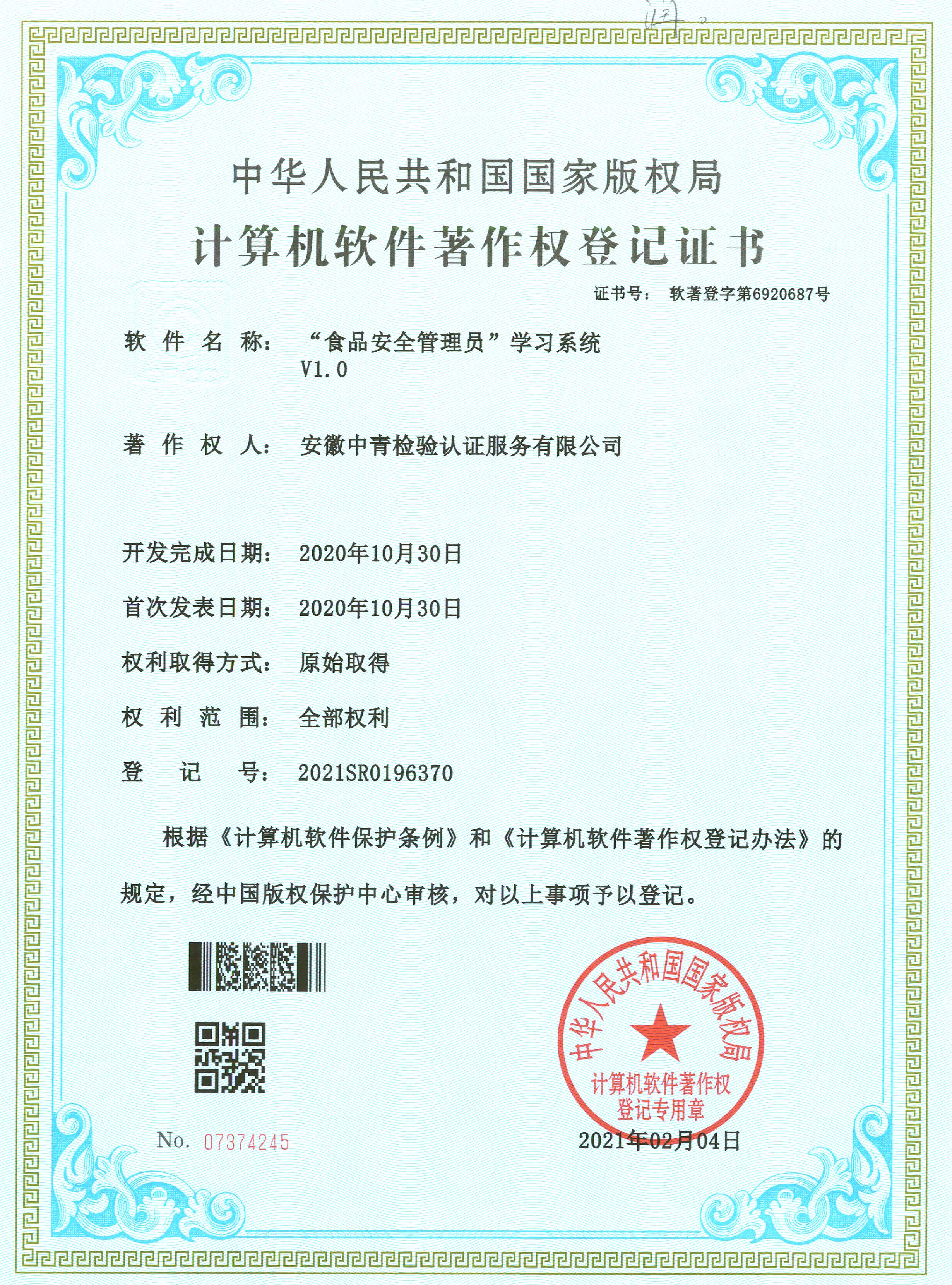 安徽中青檢驗認證服務有限公司成立于2017年6月6日,2018年1月3日通過國家認證認可監督管理委員會批準,現認證領域:質量管理體系、環境管理體系、職業健康安全管理體系、食品安全管理體系、HACCP管理體系、有機產品認證、良好農業規范、服務體系、醫療器械質量管理體系、企業誠信管理體系、食品工業企業誠信管理體系、食安安徽品牌等類別認證。